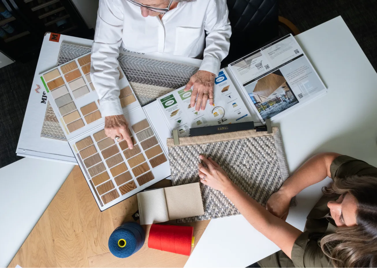 Stop in or schedule a visit to simplify your material selection for commercial carpeting, carpet tile, luxury vinyl tile, vinyl composition tile, ceramic, porcelain & marble tile, large format panels, and other solutions such as self-leveling, demolition of existing flooring, prep-work, and more.